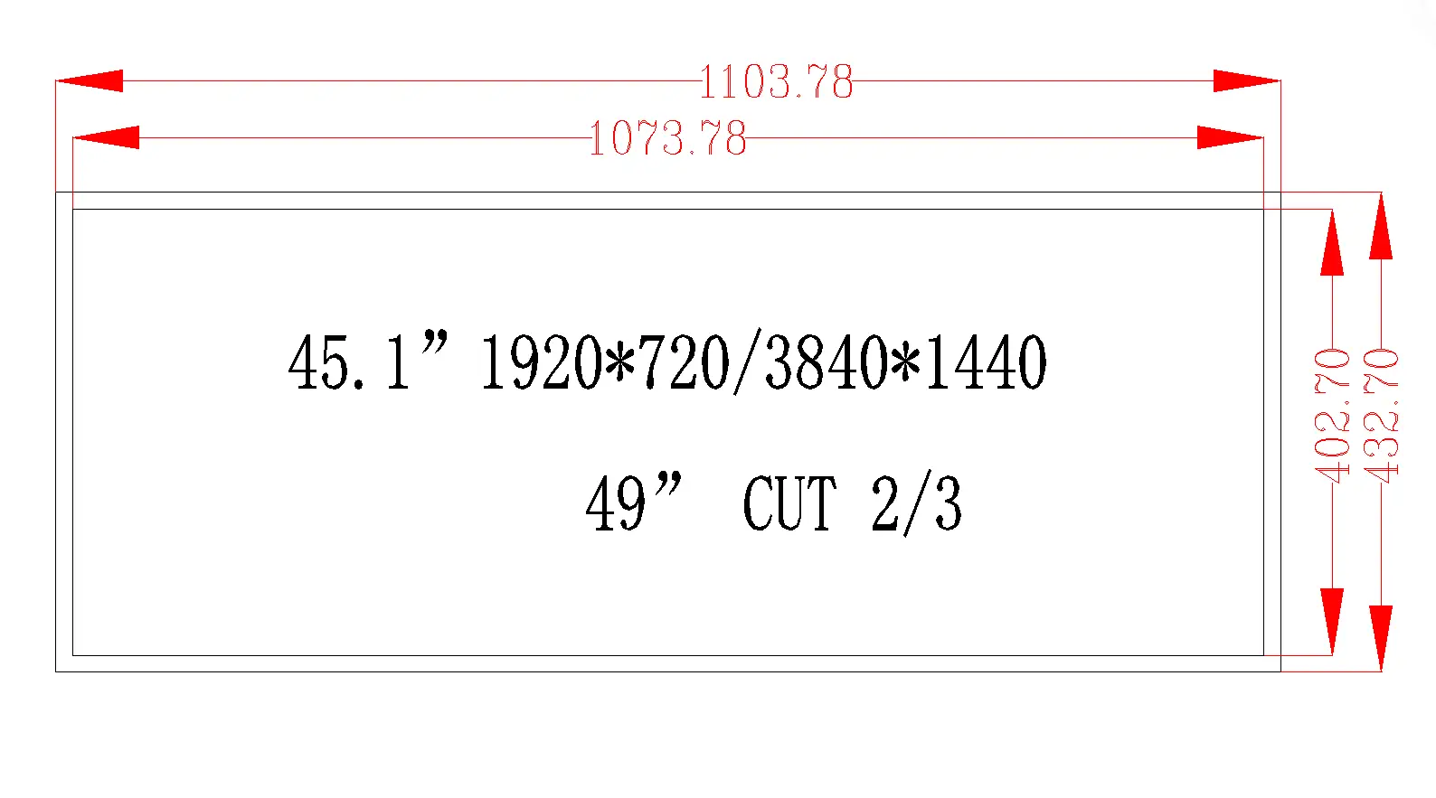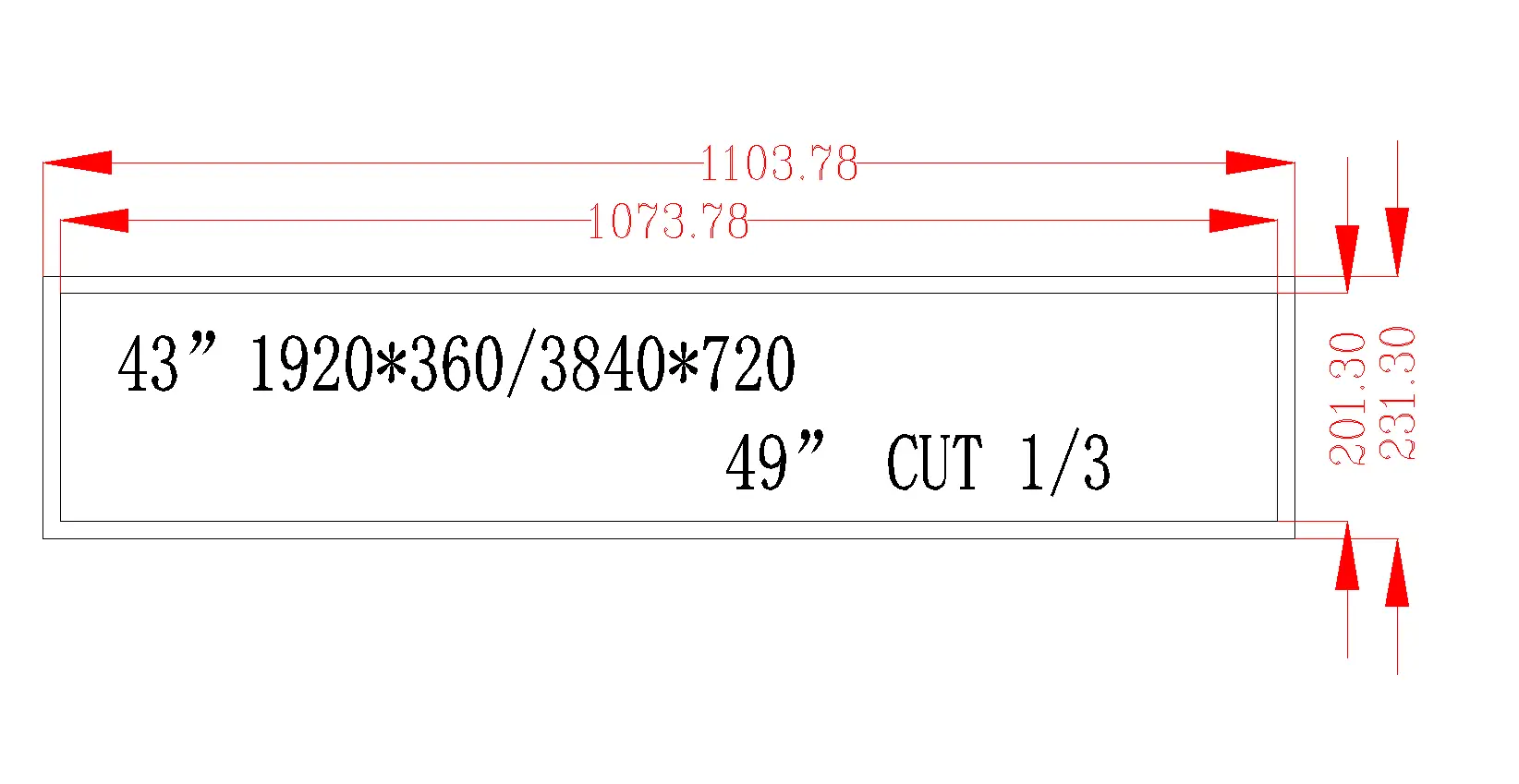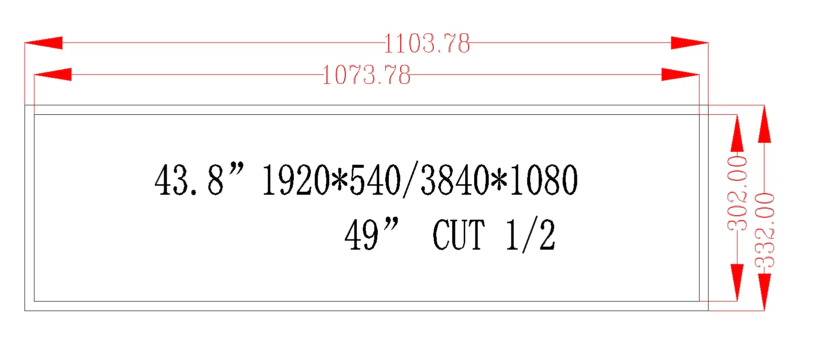 49 inch stretched Bar LCD LVDS 500nits high brightness LCD Display Kit