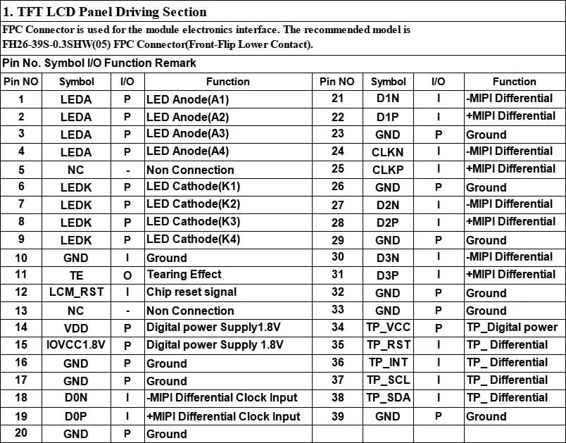Touch method:on-Cell Touch, I²C